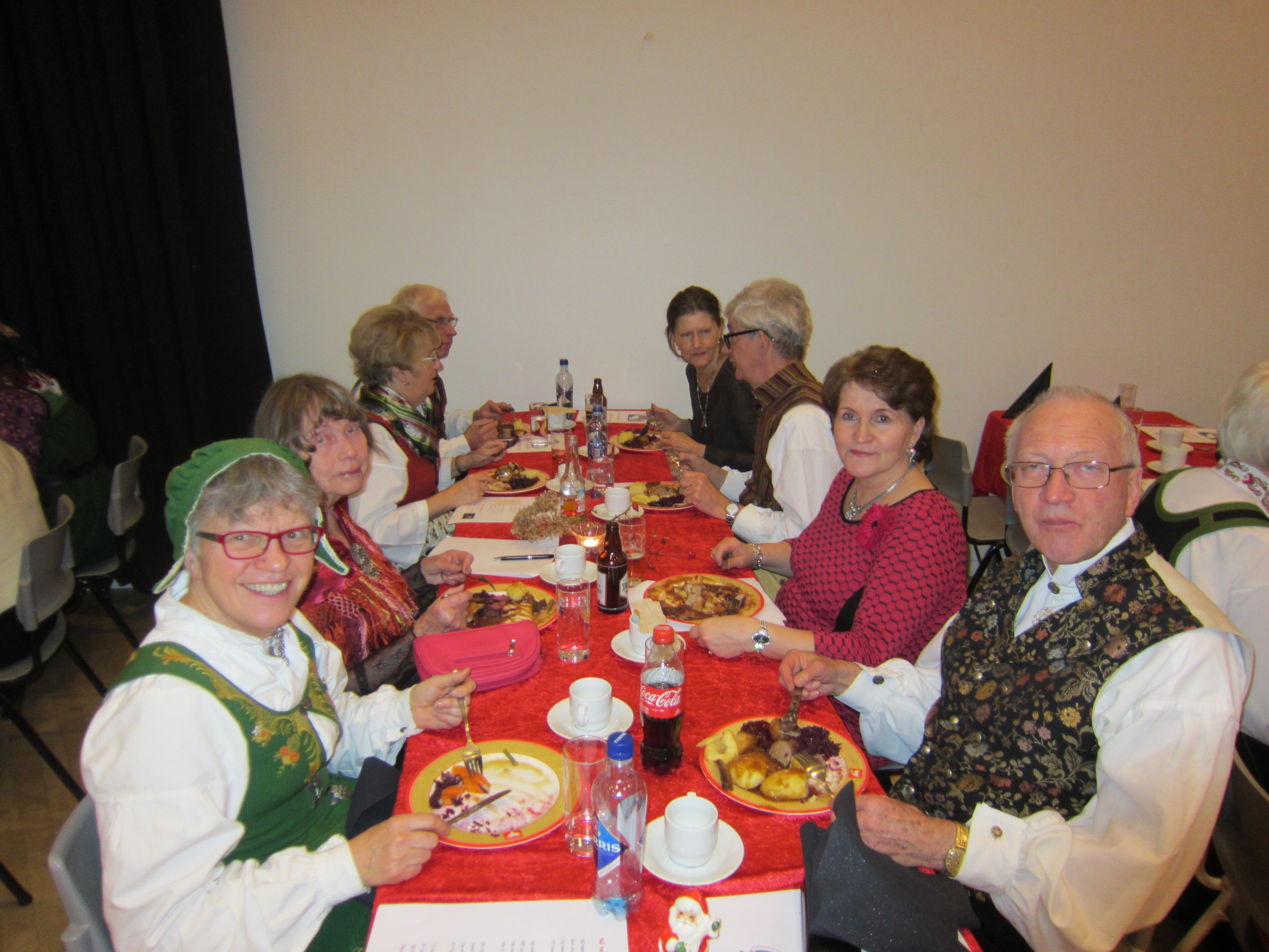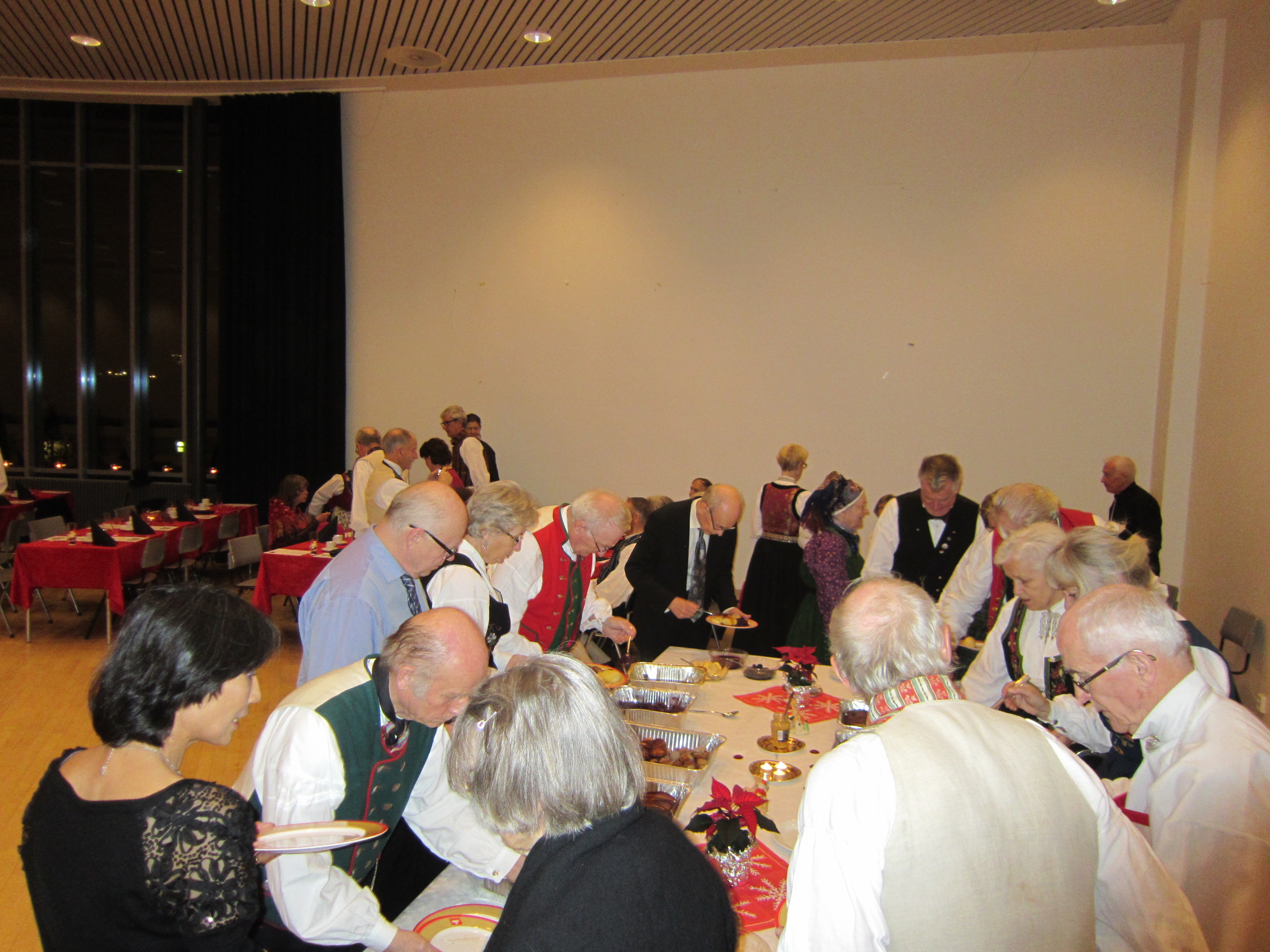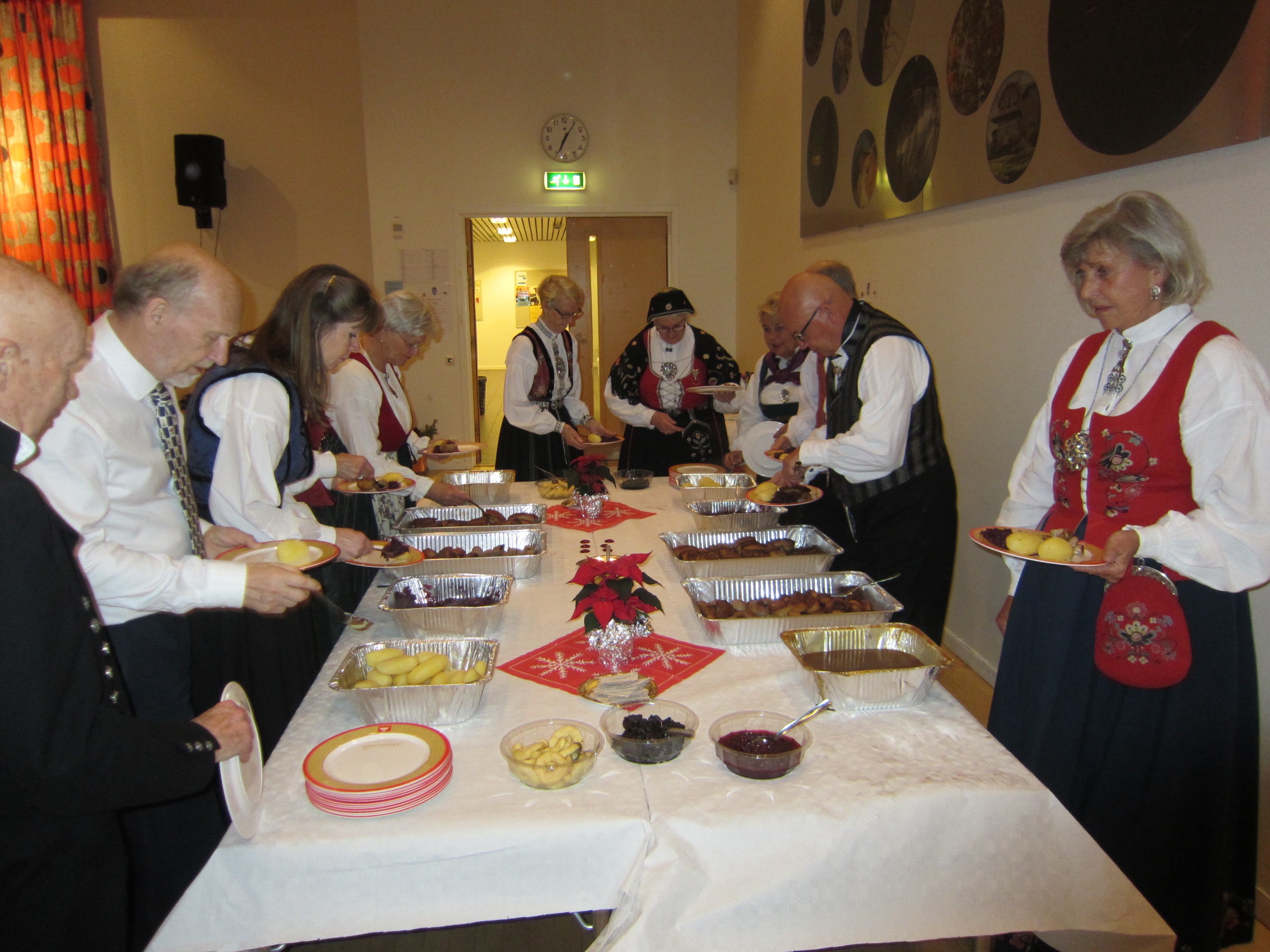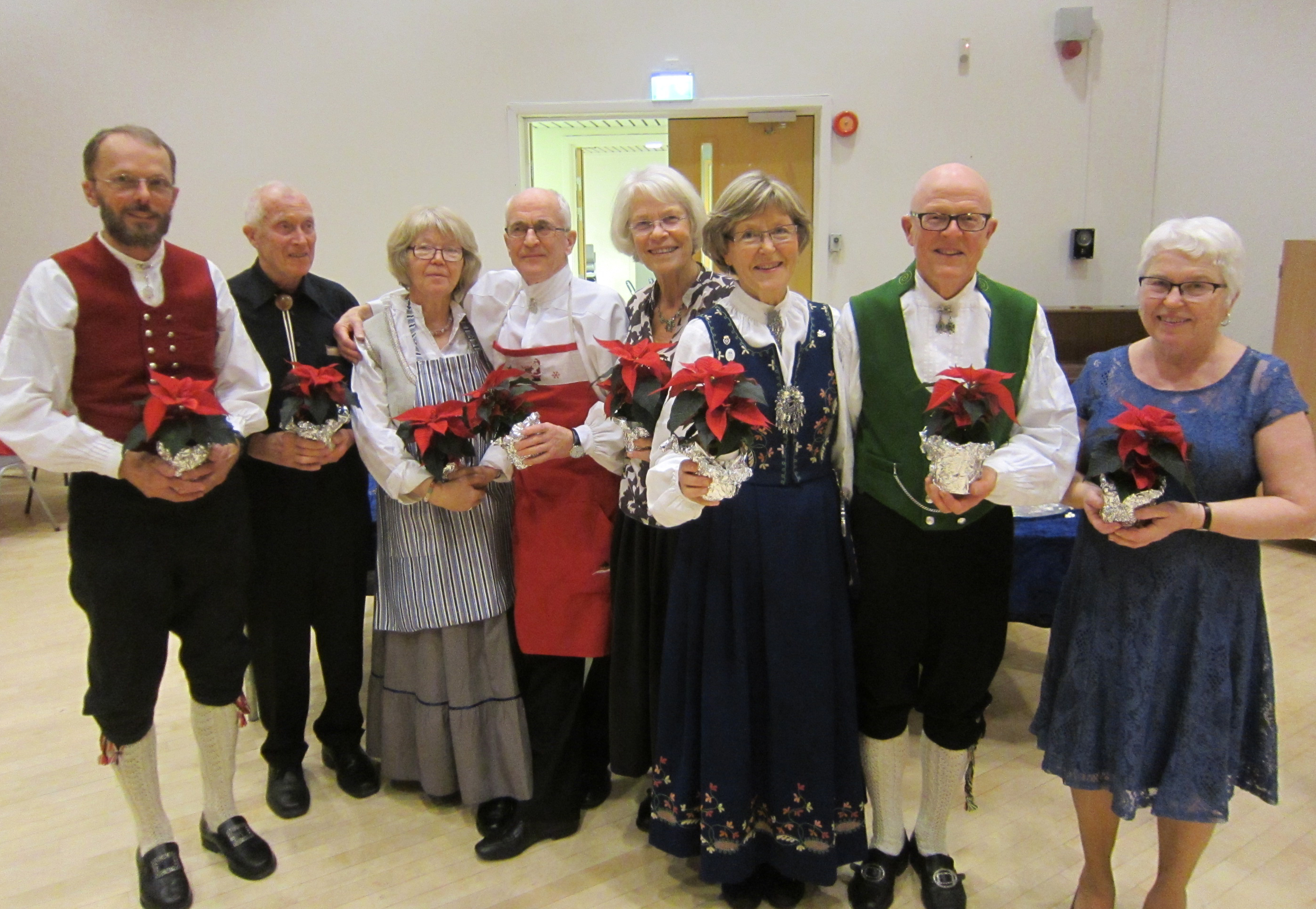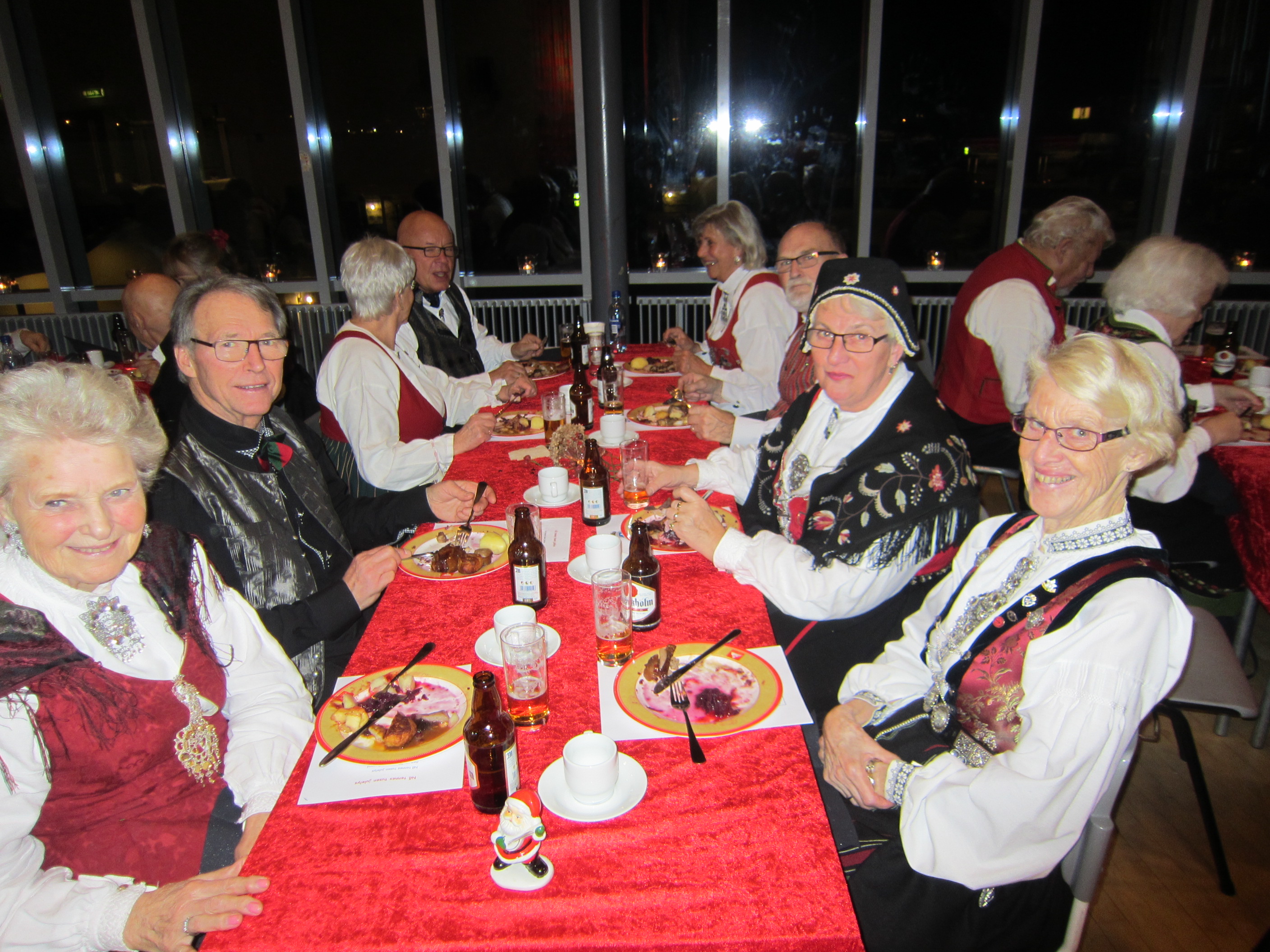 Det var 71 deltakarar på Symra sin tradisjonelle julefest i Engebråten skole. Eit lokale som egnar seg godt til slike festar, med godt dansegolv, og god plass, men ikkje så godt å syngje i. Som vanleg gjorde nemnda ein stor innsats for at alt skulle gå knirkefritt, med servering og den gode julematen og fine festleiinga. Vi må spesielt peike på den framifrå dansemusikken som Solvor styrde med sikker boge. Det 6 manns store orkesteret var heilt topp! Elles fekk som vanleg mange takk og blomar for innsatsen i 2016. Erik helsa frå styret og fortalde litt om planane for neste år. Curre og dei andre 4 frå Stockholm helsa og ynskte oss velkomne til pinse 2017. Inger Frøydis og Vebjørn styrde dansen. Her er nokre bilete frå festen.