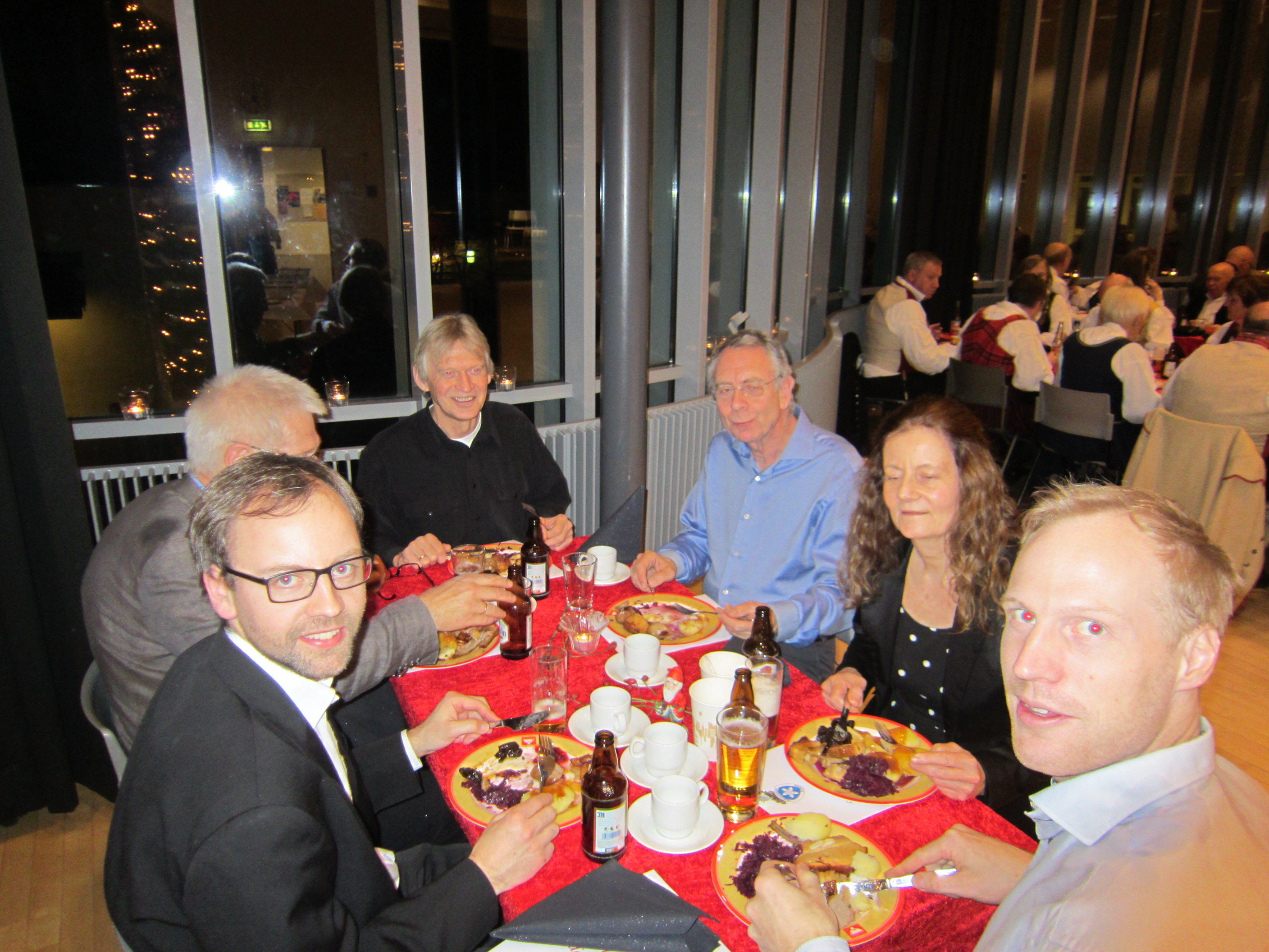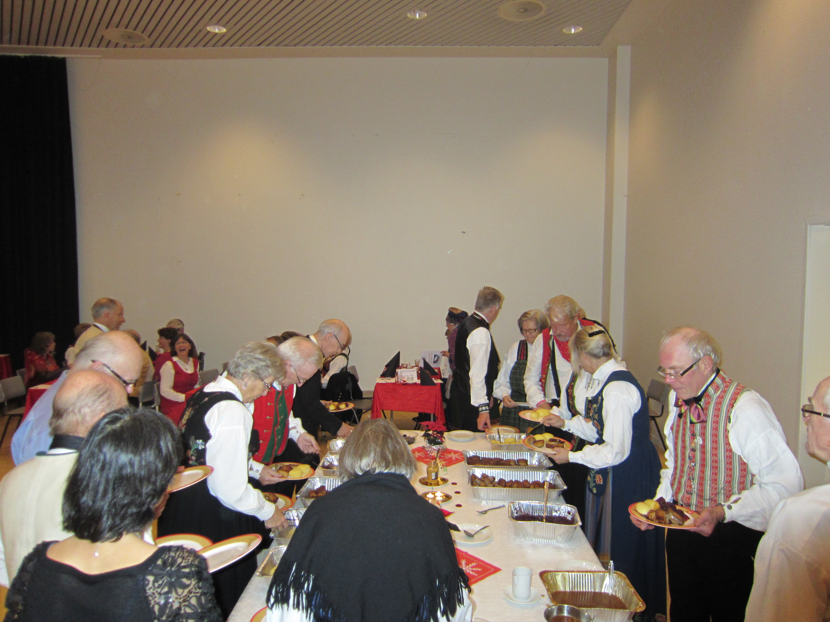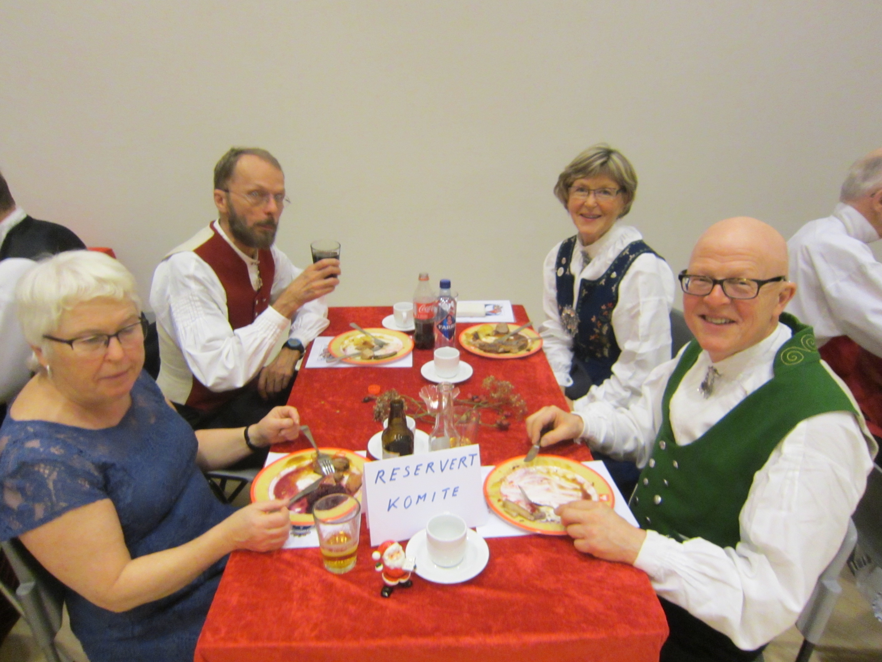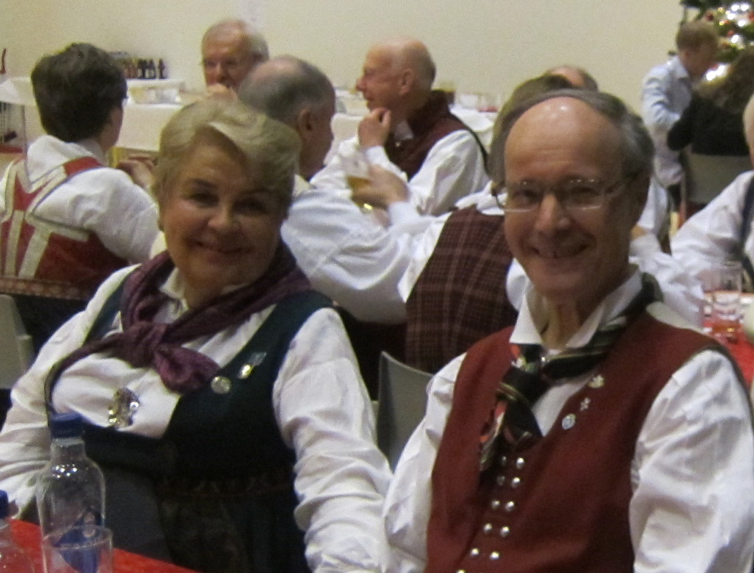 Det var 71 deltakarar på Symra sin tradisjonelle julefest i Engebråten skole. Eit lokale som egnar seg godt til slike festar, med godt dansegolv, og god plass, men ikkje så godt å syngje i. Som vanleg gjorde nemnda ein stor innsats for at alt skulle gå knirkefritt, med servering og den gode julematen og fine festleiinga. Vi må spesielt peike på den framifrå dansemusikken som Solvor styrde med sikker boge. Det 6 manns store orkesteret var heilt topp! Elles fekk som vanleg mange takk og blomar for innsatsen i 2016. Erik helsa frå styret og fortalde litt om planane for neste år. Curre og dei andre 4 frå Stockholm helsa og ynskte oss velkomne til pinse 2017. Inger Frøydis og Vebjørn styrde dansen. Her er nokre bilete frå festen.
