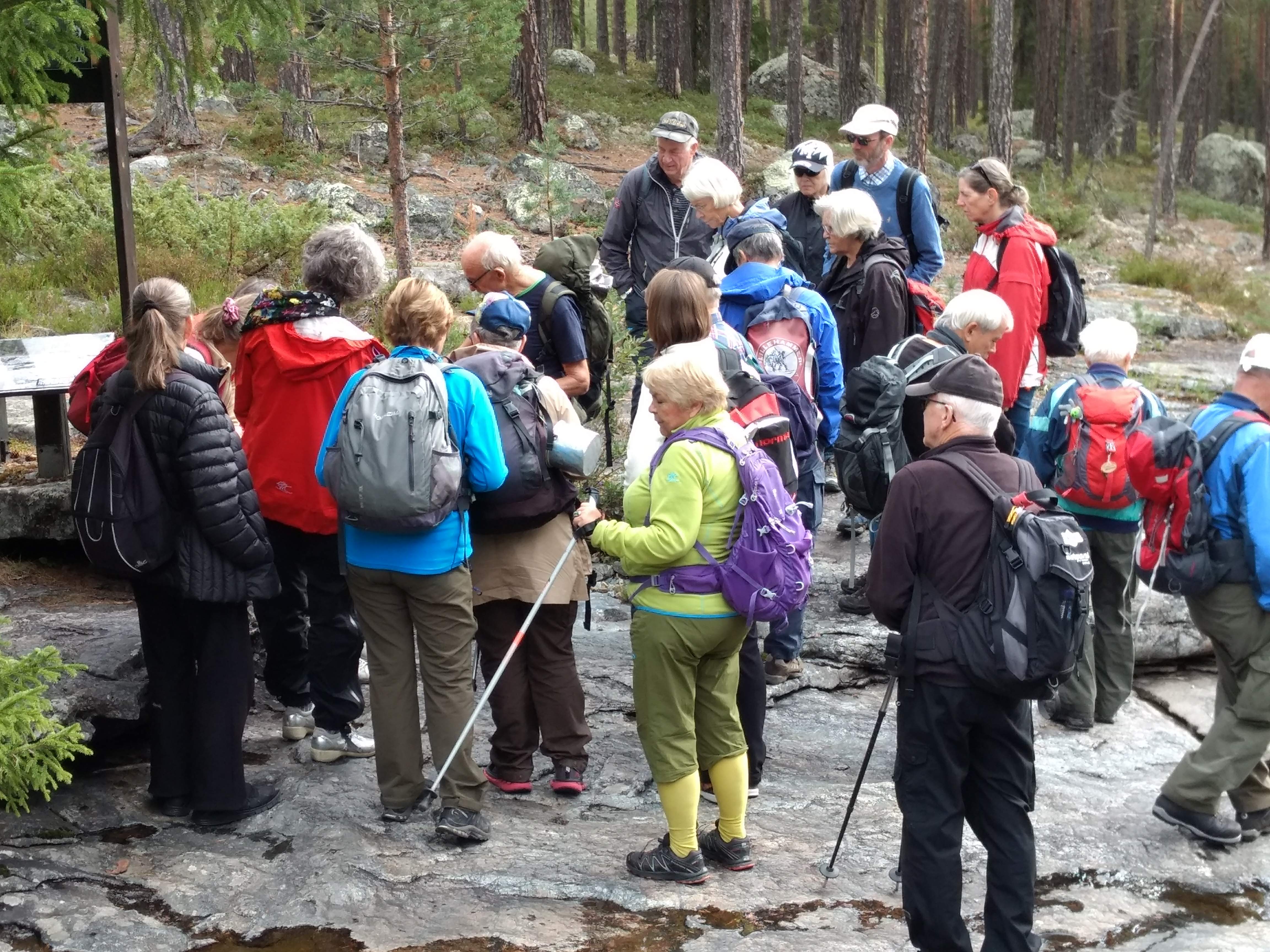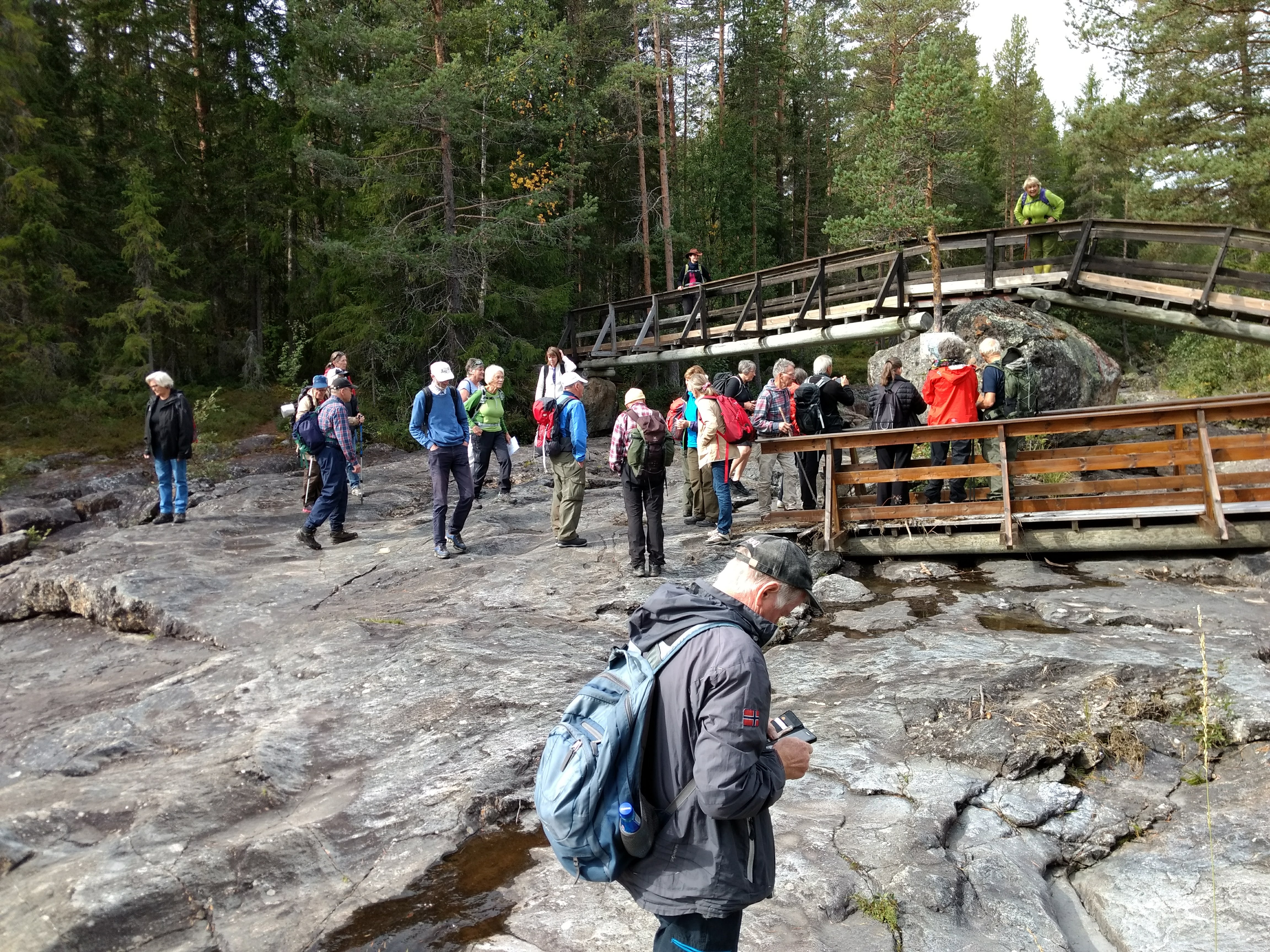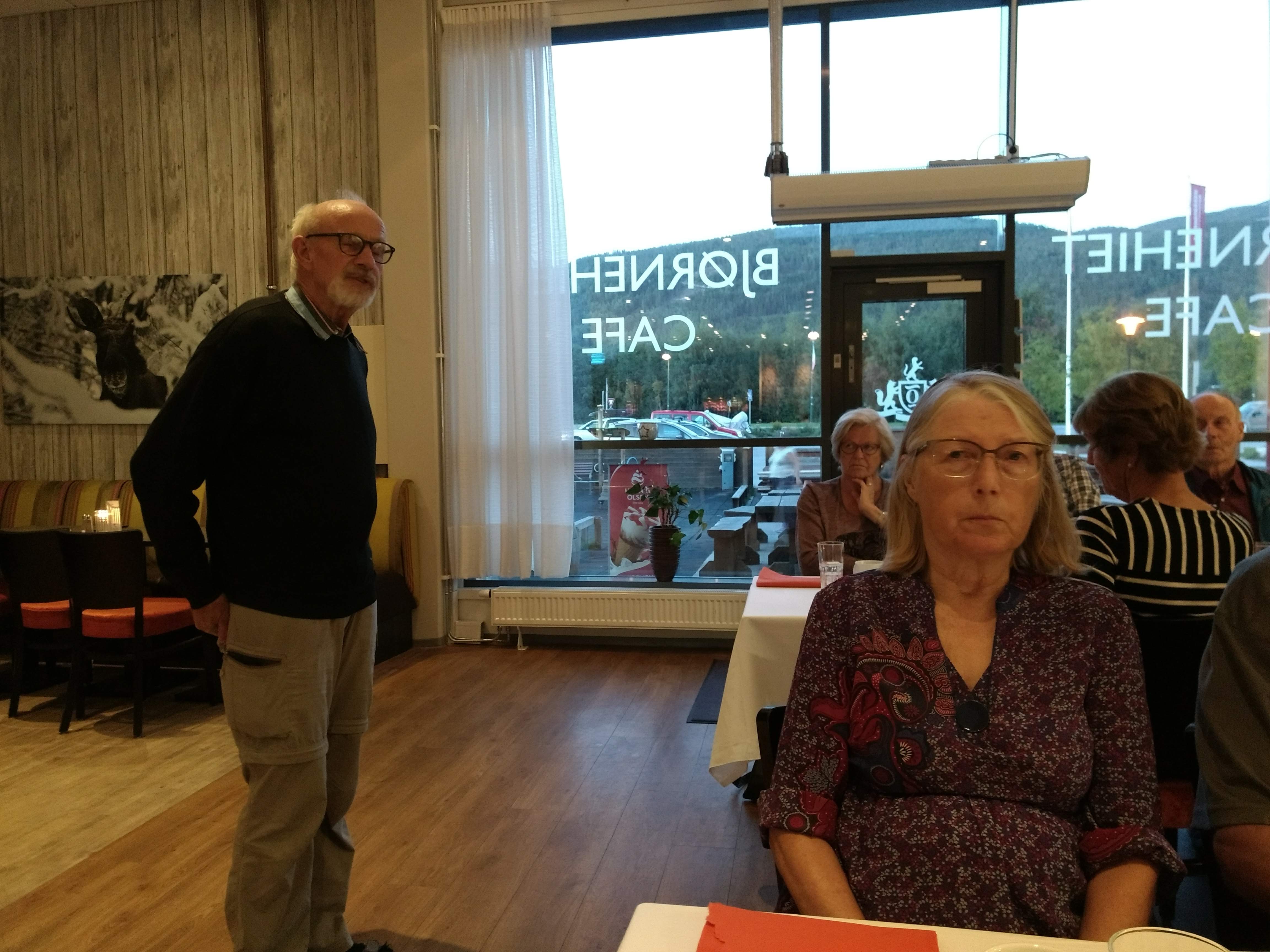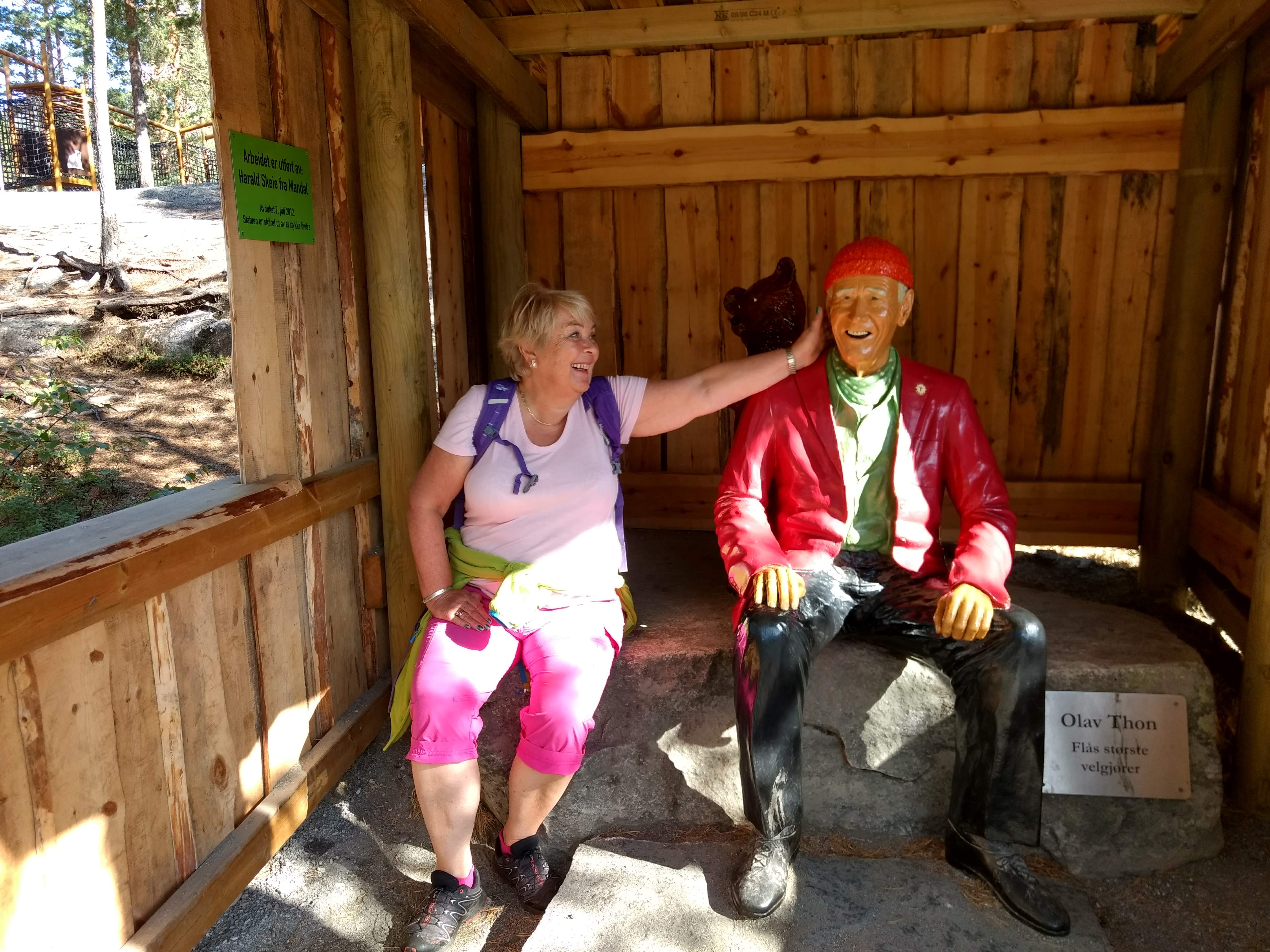 Det var til saman 31 personar som vart med på den fine haustturen til Hallingdal i månadsskiftet august/september 2018. Som vanleg var det Eystein og Oddny som hadde planlagt og gjennomførte turen – som alltid eit spennande opplegg. Vi hadde base på Thon Hotell i Flå – ein grei plass midt i sentrum av bygda som er prega av Thon sine investeringar. Veret var det aller beste alle dagane. Fredag køyrde vi ei mils veg oppå fjellet ved Veneli og tok turen innover Vassfaret. Dei fleste gjekk ein tur på ca ei mil fram og tilbake. Trass i våt sumar, var det mange myrar og små vatn – passa bra med namnet Vassfaret. Laurdag drog vi nokre mil nordover dalen til Garnås der det for lenge sidan var eit stort meteorittnedslag. Eystein fortalde den spennande historia og vi fekk sett restar av dei bergartane som danna seg etter nedslaget. Dei fleste gjekk ei løype på 4 km, og mange plukka tytebær eller blåbær som det var flust av her. Søndag drog vi til Bjørneparken som ligg berre nokre hundre meter frå Flå sentrum. Vi fekk orientering om parken og dyra der, og dei fleste var med på mating av bjørnane, sume også ulvane og andre dyr. Laurdagskvelden fekk vi ei økt med dans i Thon-hallen, så vi hadde plass nok! Fasit: Enno ein fin hausttur i minneboka.