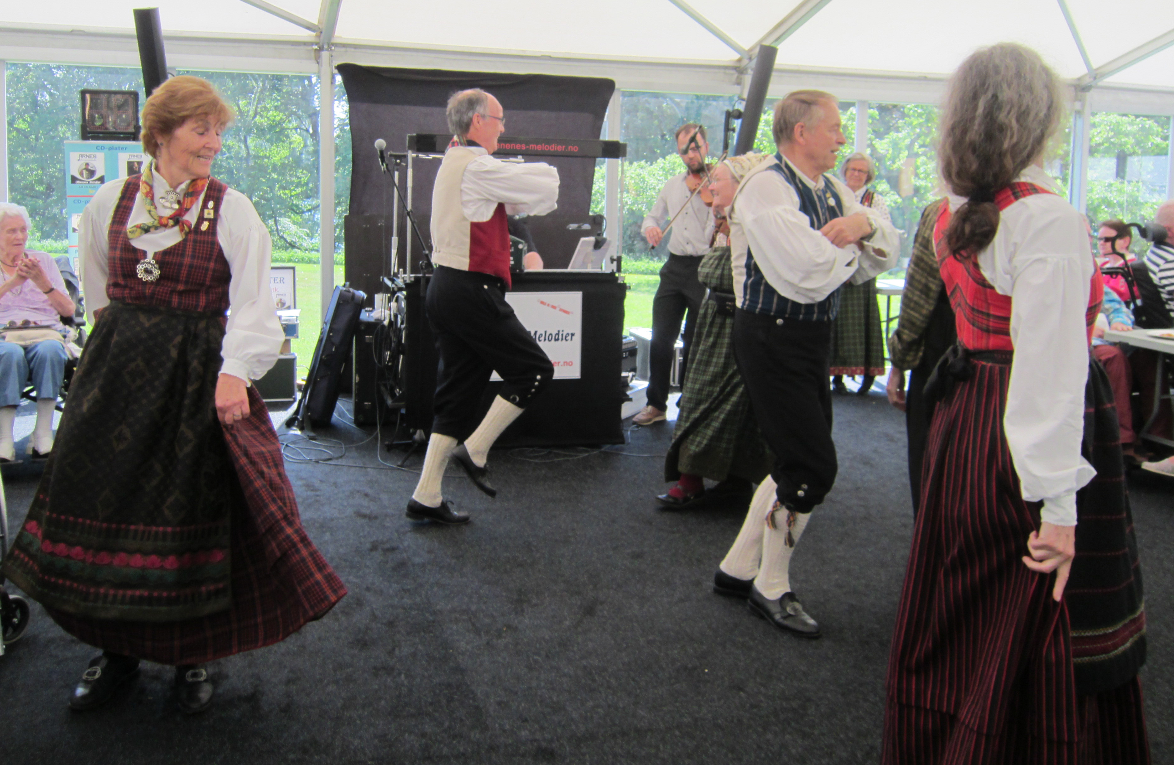 Den 6. og 7. juni 2016 hadde laget to dagar på rad framsyning for eldre i eit telt på Bogstad gård. Veret var strålande begge dagane. Det var Byråden i Oslo for eldre og Seniorsaka som stod bak. Vi var 6 par. Første dagen spela Per Klev (trekkspel) og andre dagen tok benjamin seg fri frå jobben og spela for oss. Fin innsats på kort varsel av begge to! Einar hadde skada handa i ei bilulukke. Vebjørn var danseleiar. Etter dei halvtimes framsyningane fekk vi kaffi og vaflar begge dagane. Vi trur både vertskapet og publikum var godt nøgde med innsatsen vår!