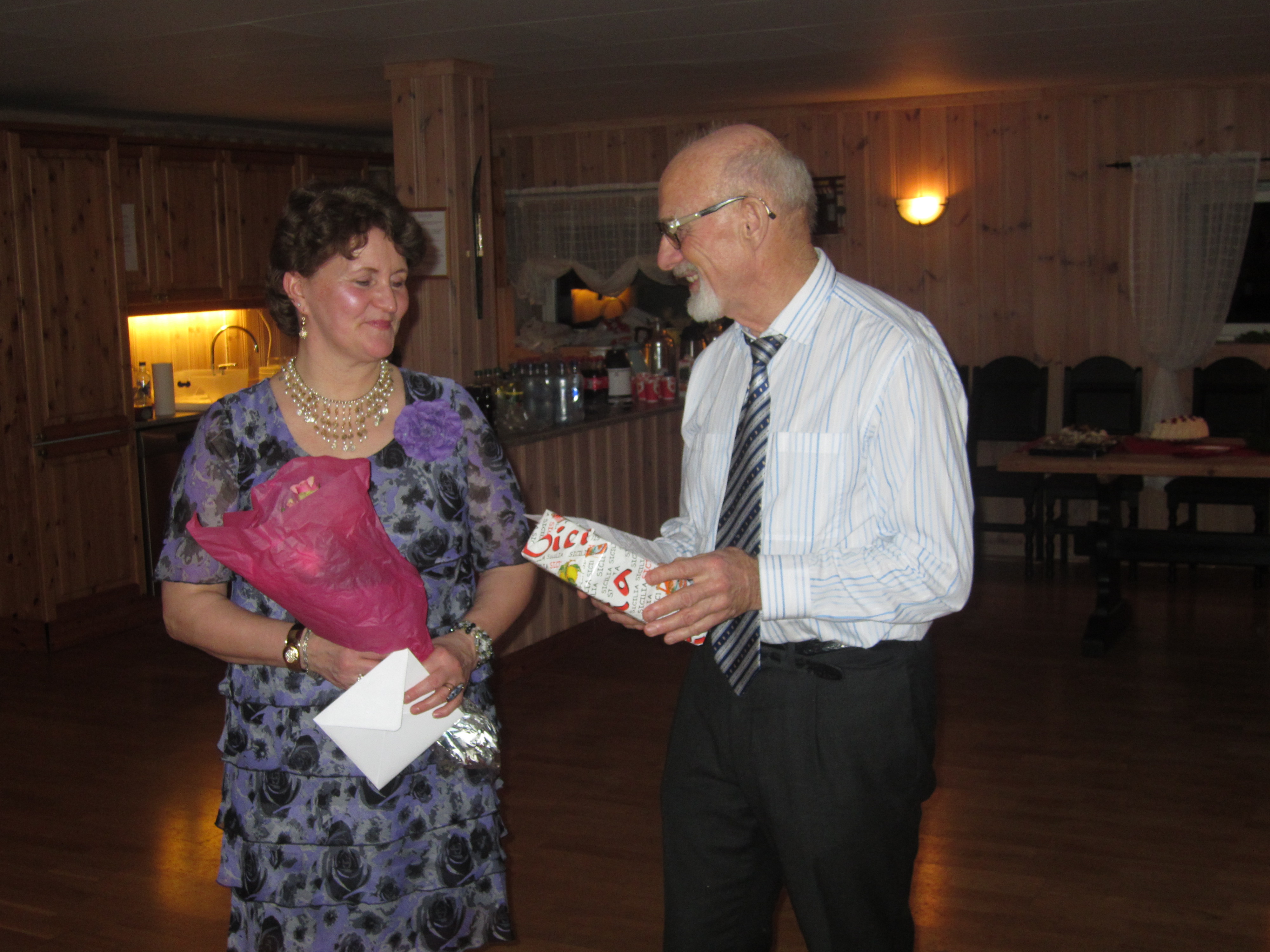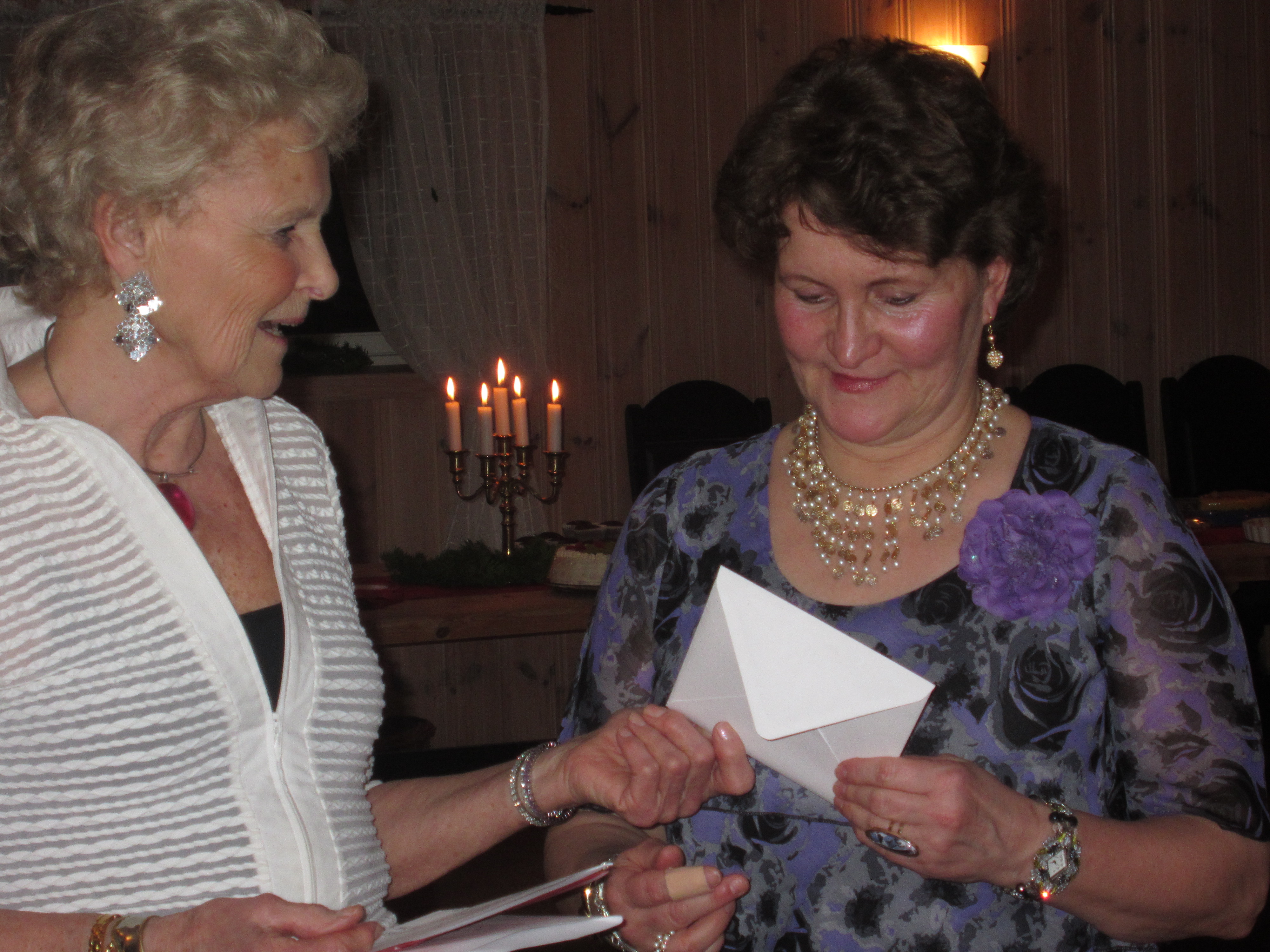 - Marita (t.h.) får gåve og tale av Grete.